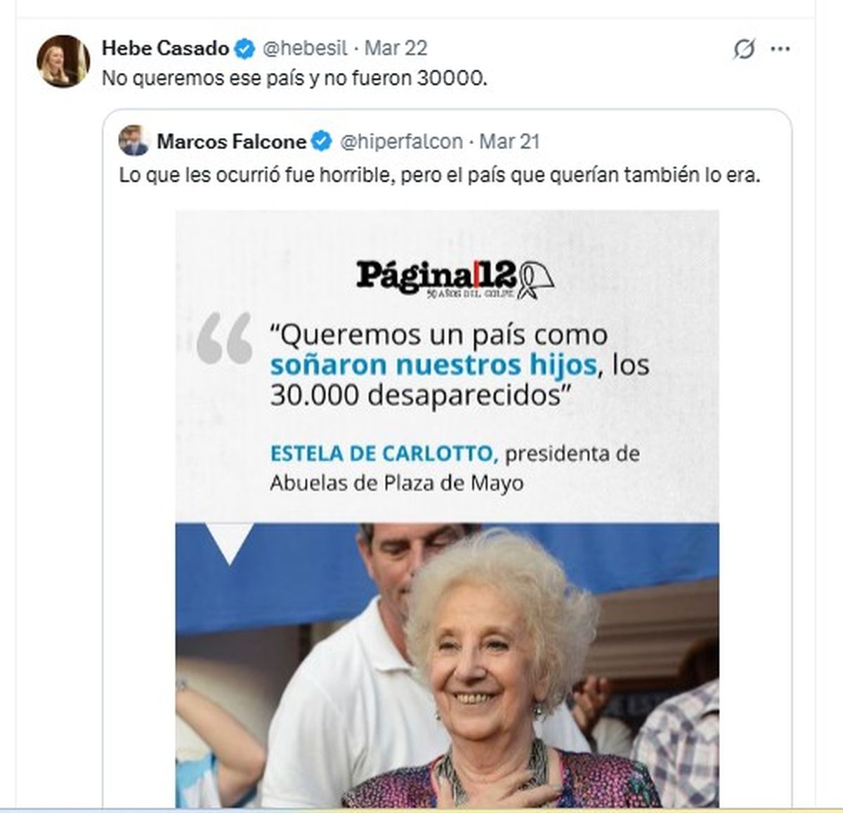 En este caso, el intercambio se dio en la previa de una nueva conmemoración del 24 de marzo, una fecha que cada año convoca movilizaciones y actividades en todo el país bajo la consigna de Memoria, Verdad y Justicia.