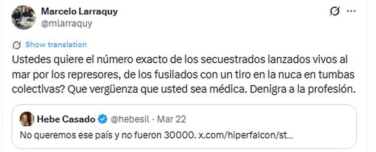 El planteo generó críticas en X (ex Twitter), tanto de dirigentes políticos como de periodistas e historiadores, en un contexto particularmente sensible por los 50 años del inicio del último gobierno de facto.