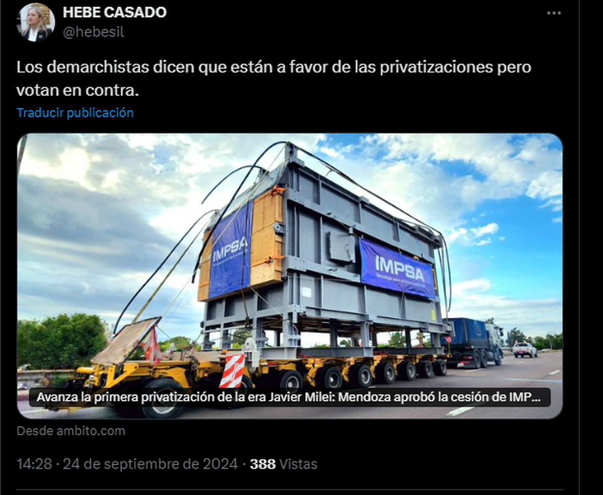 Hebe Casado y los demarchistas se cruzaron en las redes por la privatización de IMPSA
