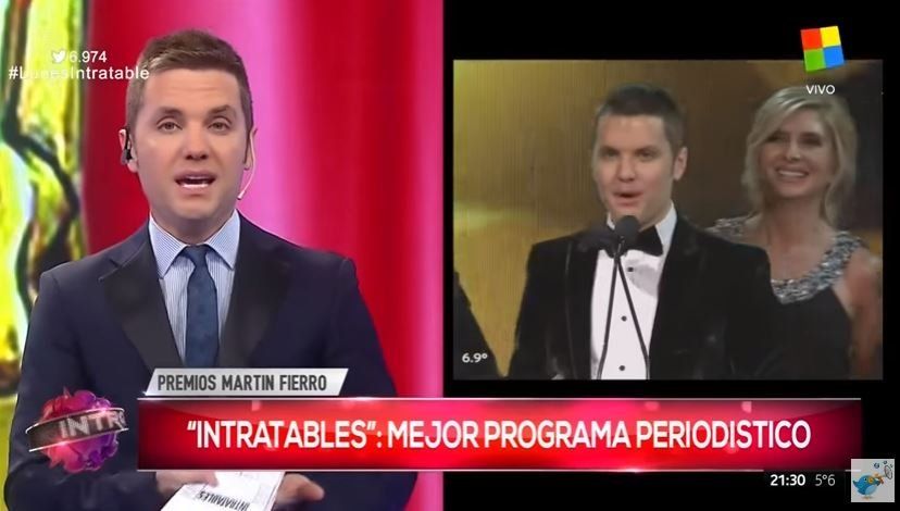 "Intratables" ganó en la categoría Mejor Programa Periodístico. Anoche en la apertura del ciclo de América, Santiago Del Moro expresó su felicidad por este reconocimiento y se refirió a la broma que hizo Diego Brancatelli cuando el equipo subió al escenario a recibir la estatuilla.