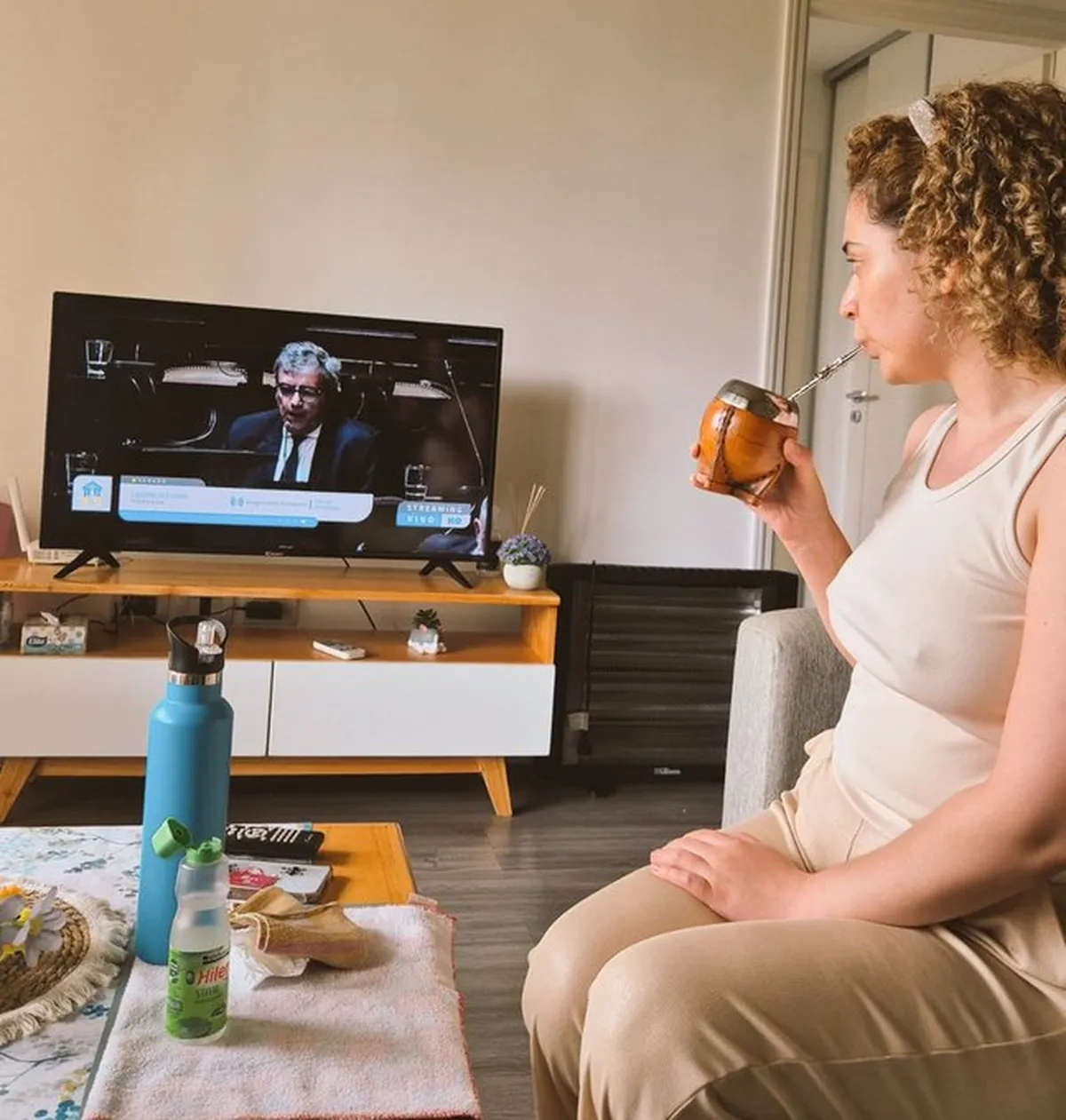 La diputada libertaria Lourdes Arrieta, que recientemente se sumó a Provincias Unidas, subió un comunicado posando mientras tomaba mates y seguía la sesión por la televisión.