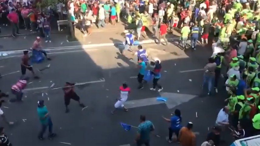Dos grupos de asistentes al acto se enfrentaron con inusitada violencia. Una de las facciones es claramente identificable por el chaleco azul con el nombre de Cacho Cortalezzi, expresidente del Concejo tucumano y legislador electo.