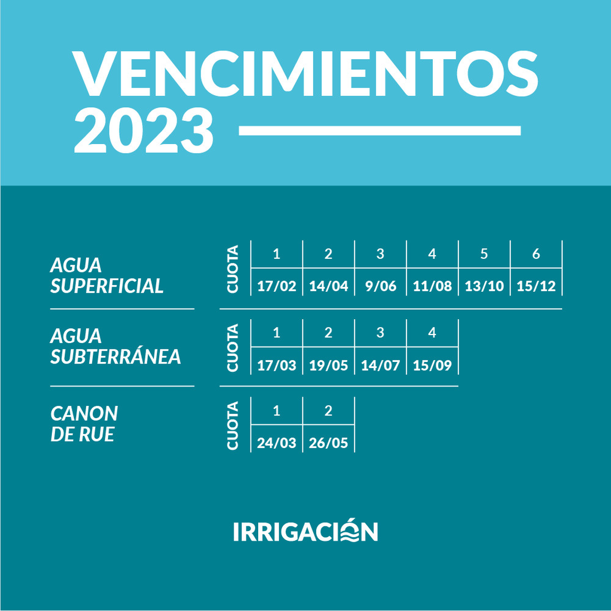Irrigación explicó que para que no se desfinancie el organismo y poder realizar obras es que se acordó el aumento del 108% en la cuota de sostenimiento, algunos de las vencimientos comenzarán este viernes.