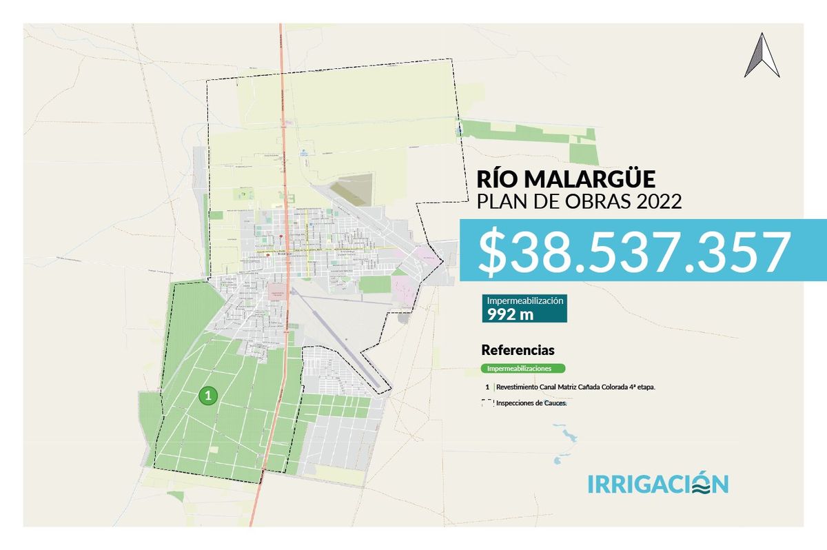 - En Malargüe, el revestimiento del canal matriz Cañada Colorada recibió una inversión de $38,5 millones y contribuirá a que se filtre menos líquido a lo largo el trayecto. Ya se impermeabilizaron 992 metros.