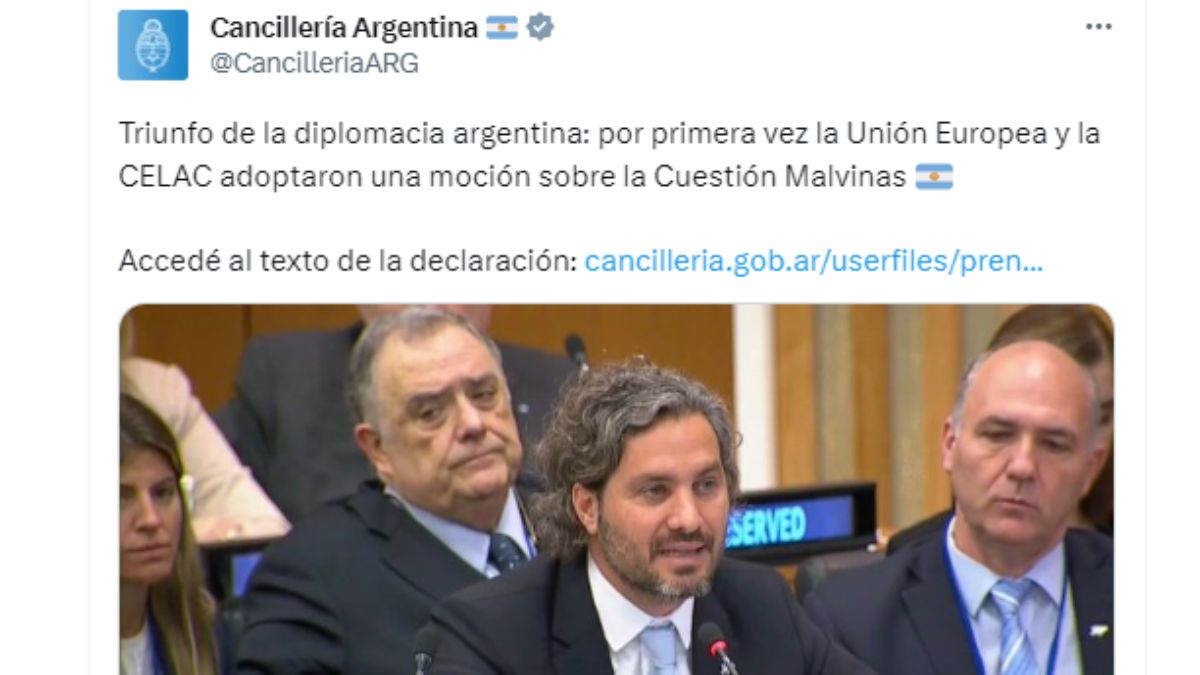 Por primera vez en la historia de las relaciones birregionales, la Unión Europea reconoció oficialmente en una declaración conjunta, la posición de América Latina y el Caribe con respecto a la Cuestión de las Islas Malvinas, que resalta la importancia del diálogo y el respeto al derecho internacional en la solución pacífica de controversias.