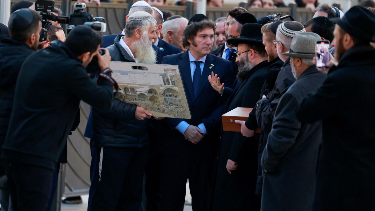 Más temprano, junto a Wahnish, el líder libertario había visitado el Muro de los Lamentos, lugar sagrado para el judaísmo, en el que pronunció una oración.