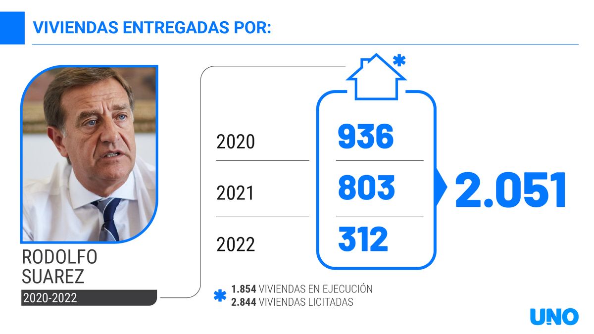 Las estadísticas que manejan aseguran que en lo que va de la gestión de Rodolfo Suarez hasta el momento se han entregado 2.051 viviendas, a las que podría sumar en poco más de 17 meses las 1.854 casas en ejecución y las 2.844 licitadas.