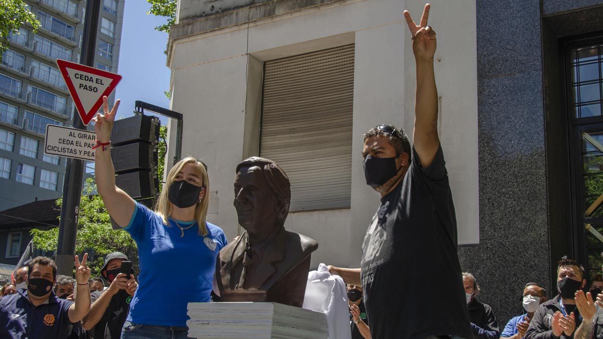 El busto de Kirchner instalado en la sede de la CGT lleva además una placa grabada con la frase: "No pasarán a la historia aquellos que especulen, sino los que más se la jueguen".