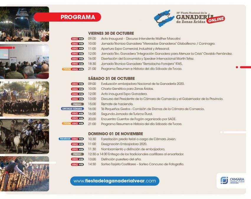 "El acto inaugural del viernes se va a hacer con una pantalla en donde se verá el discurso del intendente y el sábado hablará en vivo el presidente de la Cámara de Comercio, Industria, Agricultura y Ganadería Andrés Vavrik y lo que aún no se define es si el gobernador Suarez escuchará los pedidos del presidente de la cámara y responderá por Zoom o si enviará algo previamente armado, tradicionalmente el presidente de la cámara plantea las necesidades del sector y el gobernador responde, esperamos que esta vez se haga así", precisó el presidente del área específica de Ganadería, Ramiro Labay.