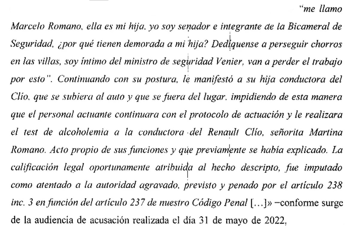 La Corte rechazó un planteo del ex senador Romano por el maltrato a policías en un control vial