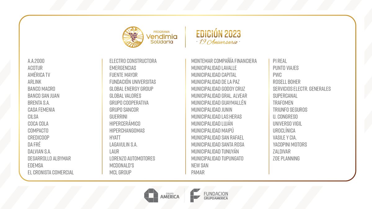 Fueron 66 las distintas entidades que aportaron donaciones para la edición 2023 de la Vendimia Solidaria.