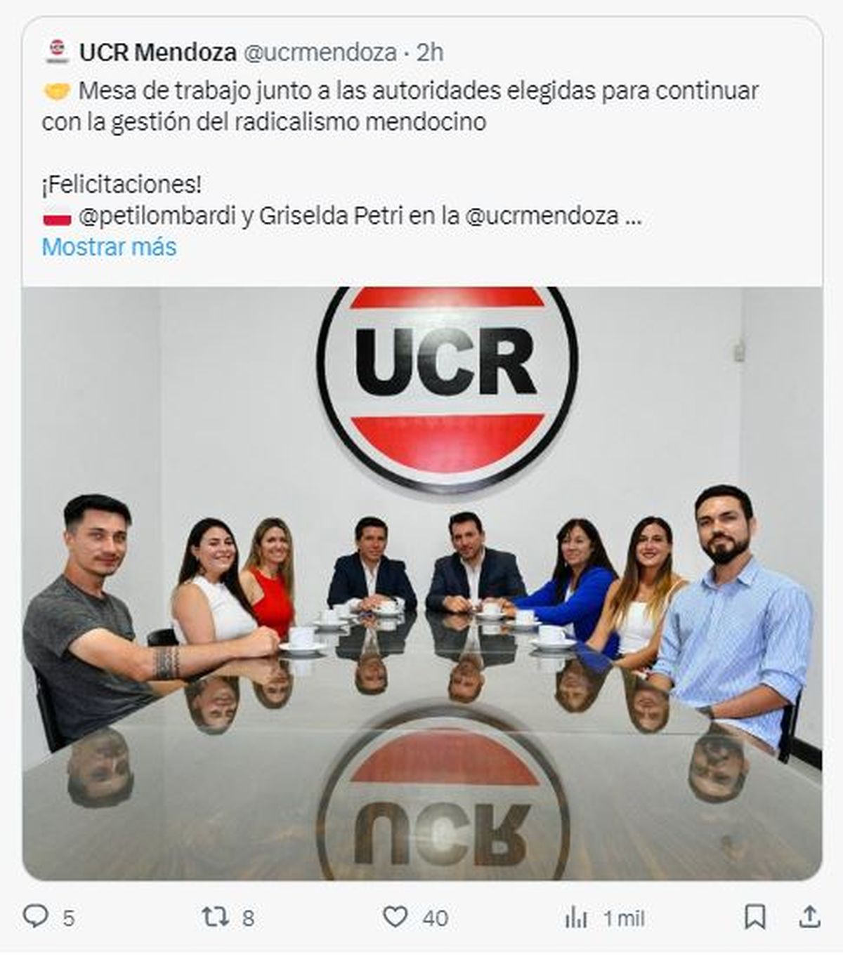 Griselda Petri manifestó encarar el desafío "con mucho optimismo y ganas de hacer cada vez más grande a este partido centenario. El radicalismo mendocino se ha unido porque es la única forma de sacar adelante el país y estamos muy convencidos de que este es el camino correcto”.
