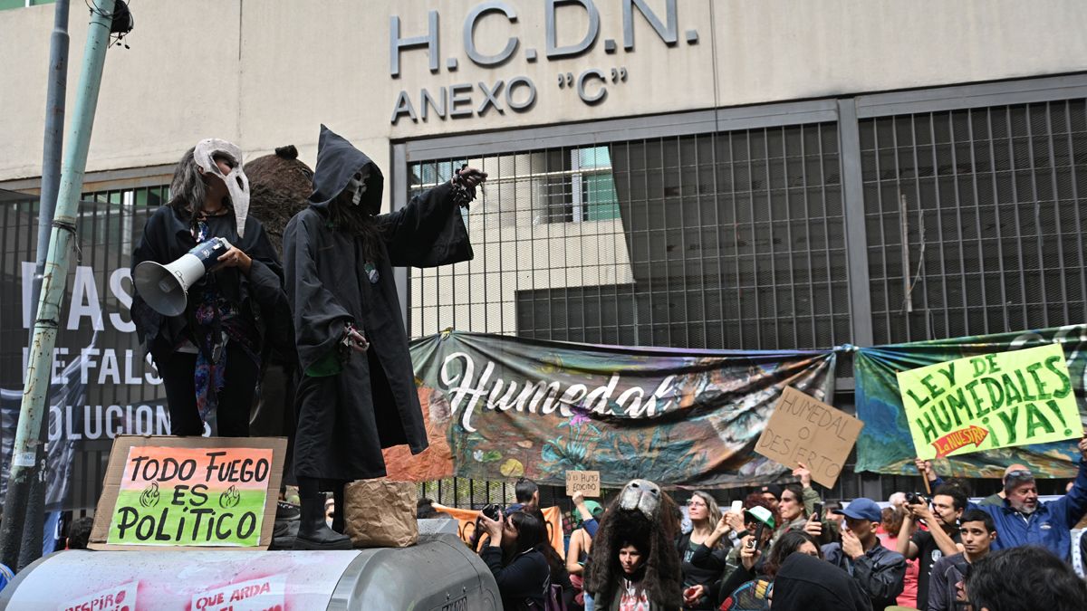 Un plenario de comisiones de la Cámara de Diputados debatía este jueves los proyectos para asegurar la protección y el uso racional de los humedales y el oficialismo busca avanzar en consensos para dictaminar a favor de la iniciativa que atiende esta problemática ante incendios forestales en distintos puntos del país, mientras ambientalistas manifestaban en las puertas del Congreso a favor de la sanción de la nueva ley.