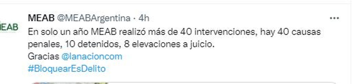 Desde el citado Movimiento Empresarial Anti Bloqueo resaltaron que en lo que va de 2022 han realizado 40 intervenciones con causas penales abiertas, 10 detenidos y 8 elevaciones a juio.