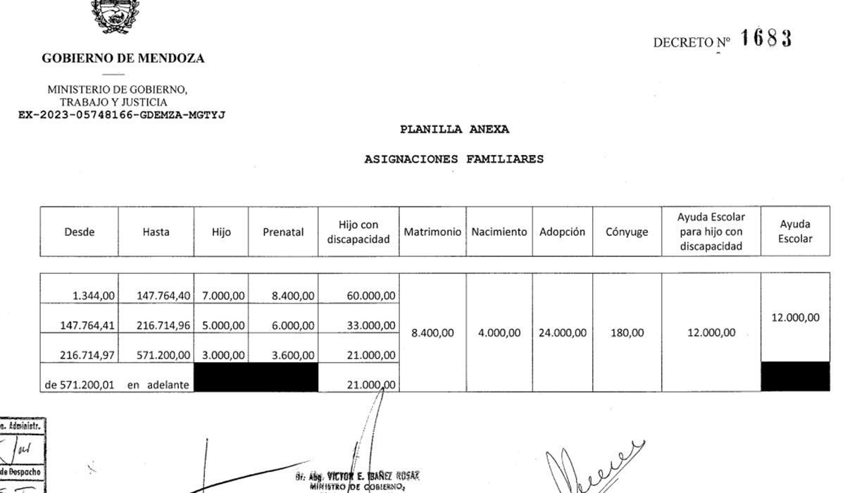 En agosto pasado, el -ahora ex- gobernador Rodolfo Suarez dispuso un incremento de asignaciones familiares como salario familiar, las de único cobro como matrimonio o las anuales como la ayuda escolar. También modificó los rangos para establecer los diferentes montos de las mismas.