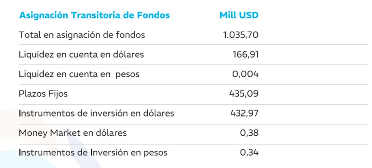 Ahora, los 1.035,70 millones de dólares actuales se encuentran repartidos de la siguiente manera: