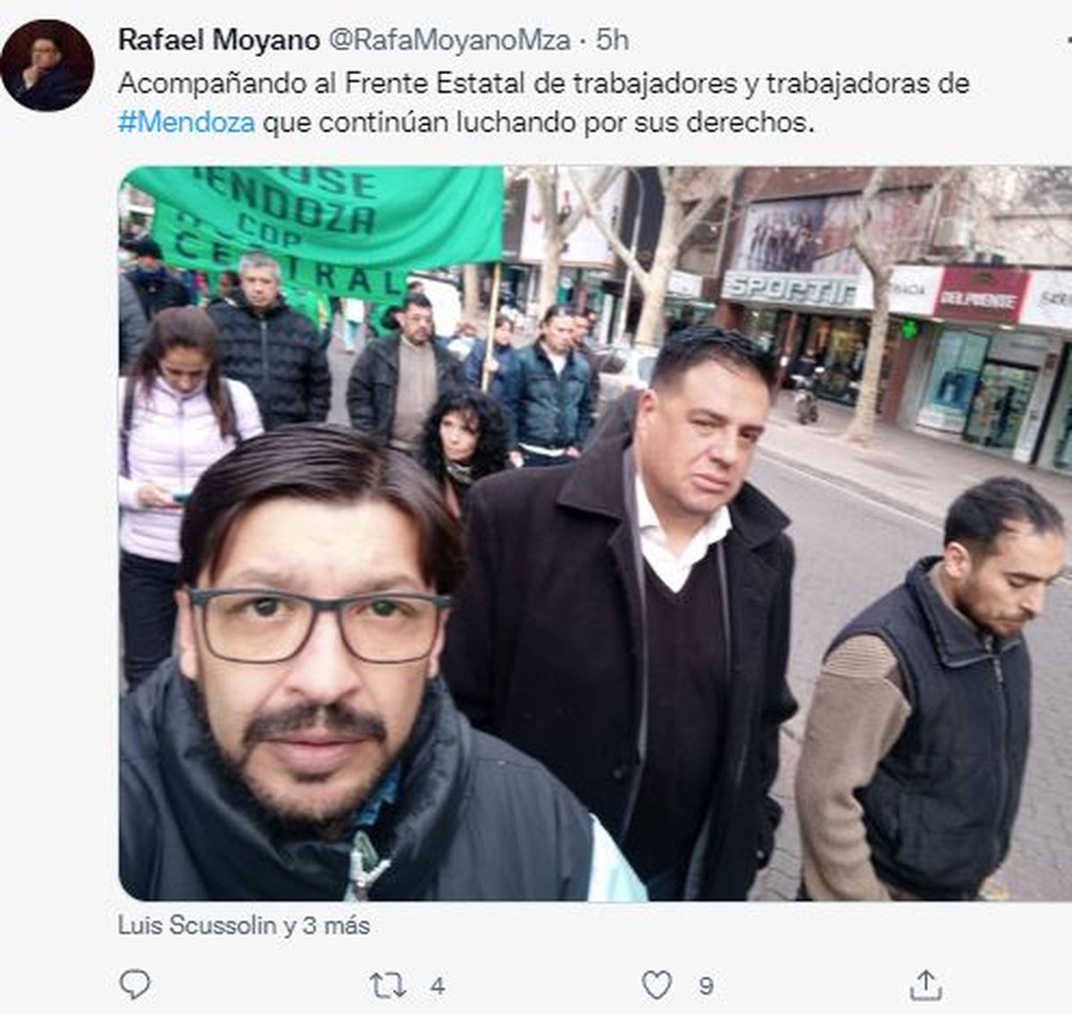 Germán Gómez, titular del bloque de diputados del PJ: "El gobierno de Rodolfo Suarez y Alfredo Cornejo, sin límites para llevarse puesta la institucionalidad de la provincia. Mi solidaridad con Roberto Macho, titular de ATE Mendoza detenido en medio de acciones gremiales mientras se realizan paritarias por la recomposición salarial".