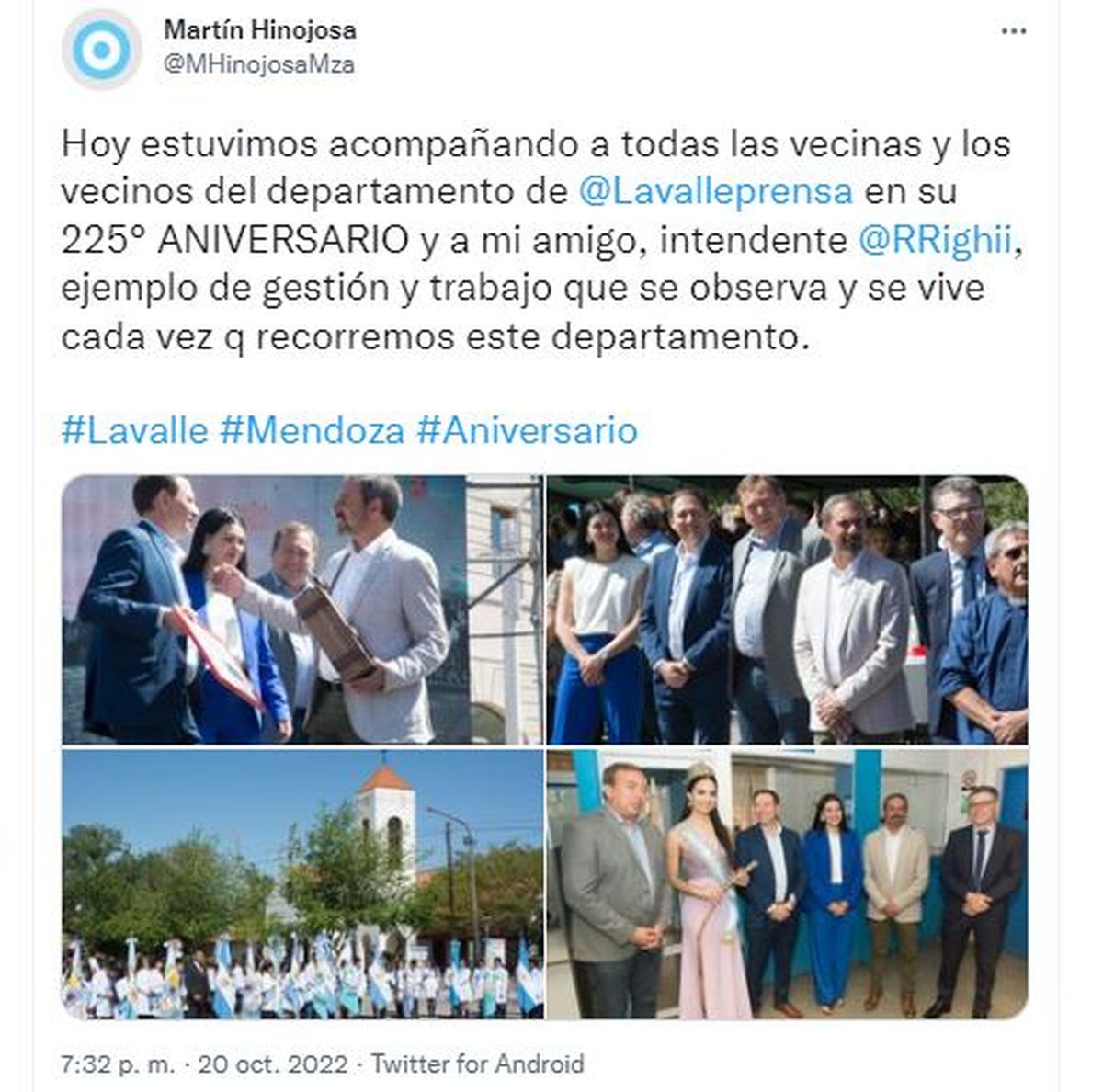 Este jueves la Comuna de Lavalle festejó su 225 aniversario y lo que podría haber sido la simple visita de dos intendentes y compañeros del partido a los actos que organizó Roberto Righi, se leyó dentro del partido como una muestra de que los jefes comunales están por encima de la "pequeña e inconducente" discusión partidaria.