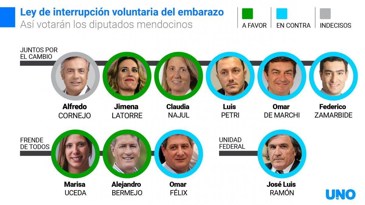 En 10 días los diputados nacionales deberán votar el proyecto oficialista para despenalizar y reglamentar la interrupción voluntaria del embarazo. De los 10 diputados mendocinos 5 votarán en contra de la ley de aborto legal, 4 votarán a favor y sólo hay un diputado que aún no se define.