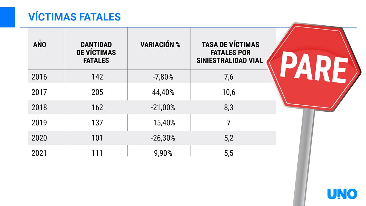 Para argumentar su rechazo a la ley y sostener el 0,5% de alcohol en sangre que está vigente, desde el Gobierno apelan a una estadística que muestra que desde el 2017 a la fecha los accidentes fatales bajaron casi a la mitad. Pasaron de ser 205 aquel año, a registrar 111 el año pasado y atribuyen esa caída precisamente a los controles.