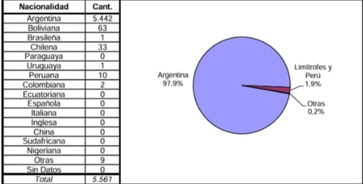 En el ránking, de los extranjeros que lideran las estadísticas son los bolvianos (63) los primeros. Siguen chilenos (33), peruanos (10), colombianos (2) y brasileño (1), siempre con datos de 2022.