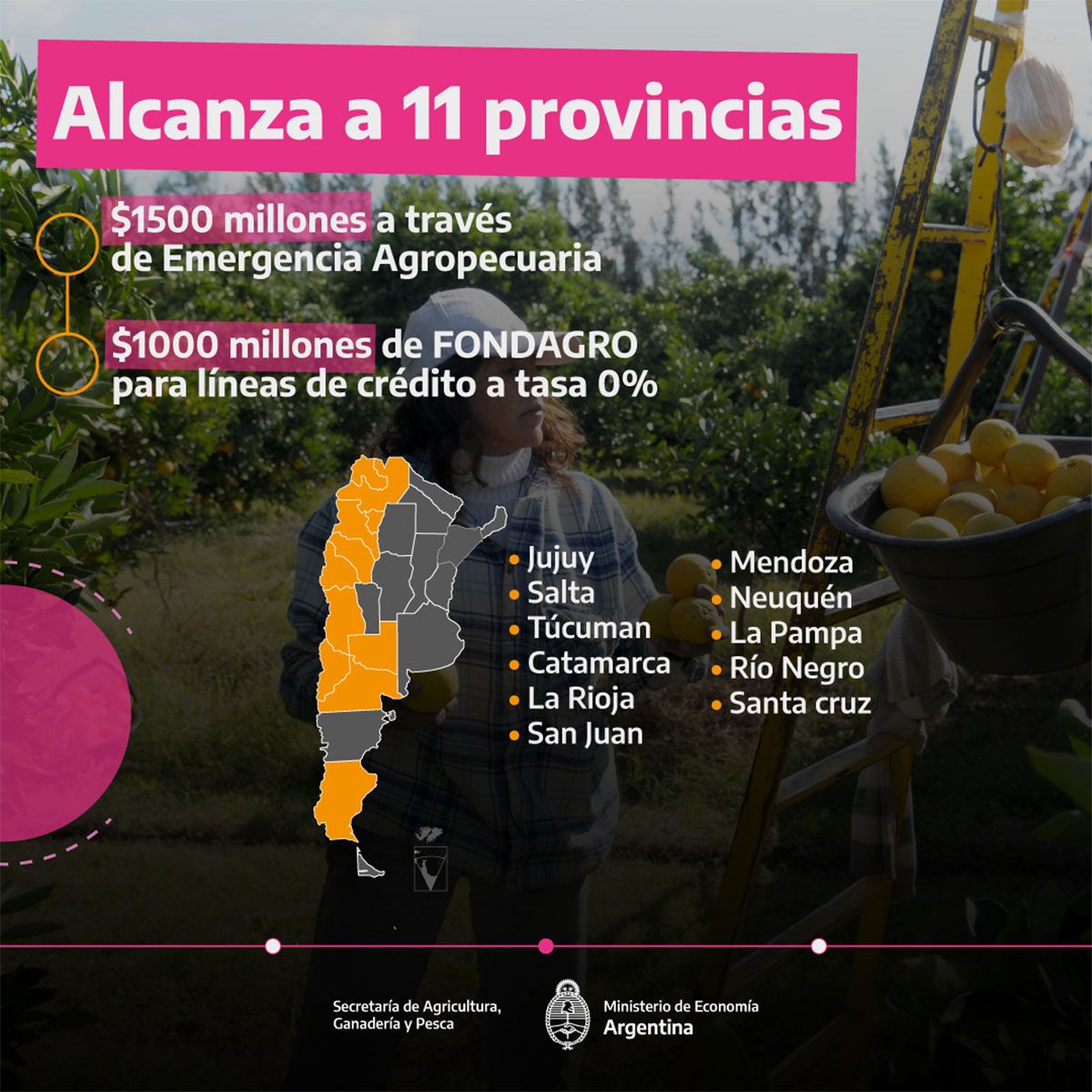 - Prometió tasa 0% para productores afectados. En Mendoza, el BNA solo tiene préstamos al 75% anual.
