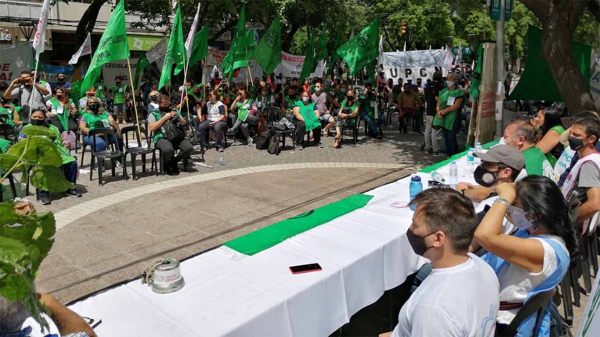 En un plenario realizado en la Peatonal Sarmiento, los gremios estatales de Mendoza decidieron convocar a un paro para el jueves 10 de diciembre y a una vigilia la noche anterior en reclamo de mejoras salariales. En el acto estuvieron presentes miembros de Fadiunc, ATE, Sute, Sitea y Judiciales entre otros.