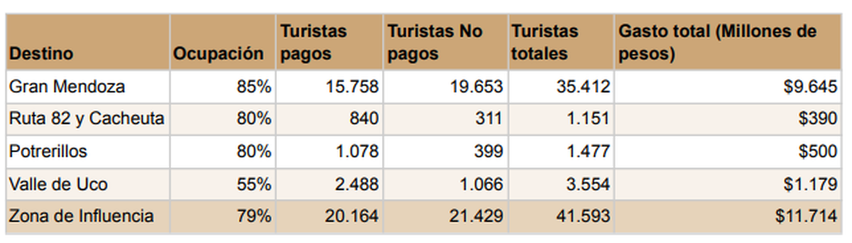 Y aclaró que el dato de cantidad de visitantes se da en promedio porque hay muchos turistas que llegan a Mendoza para vivir Vendimia, pero terminan alojándose en casas de familiares o amigos, y ellos claramente no entran en este registro oficial.