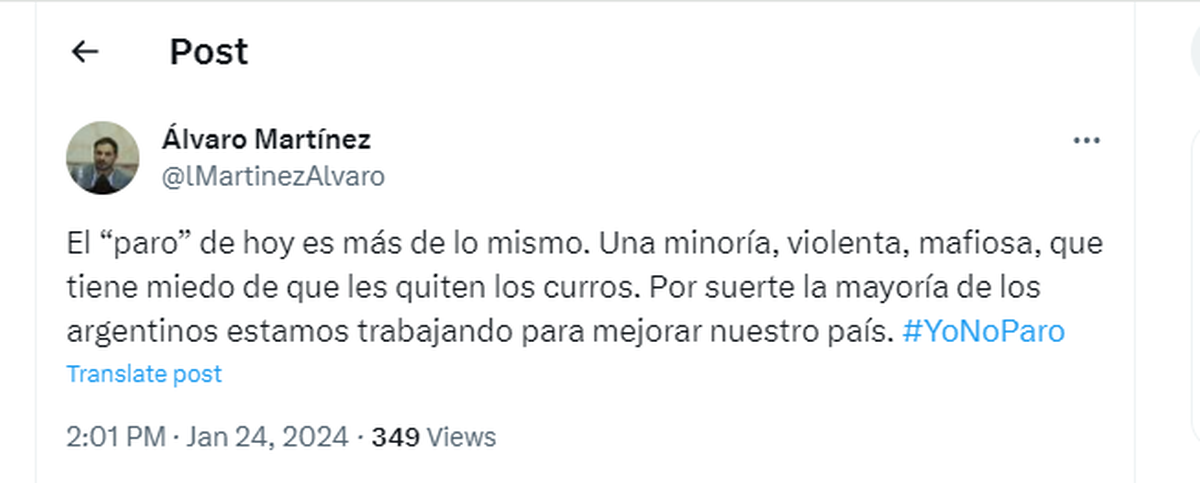 Además, mostraron su descontento con el paro general los legisladores mendocinos Mercedes Llano y Facundo Correa Llano, parte de La Libertad Avanza, y Álvaro Martínez, del PRO.