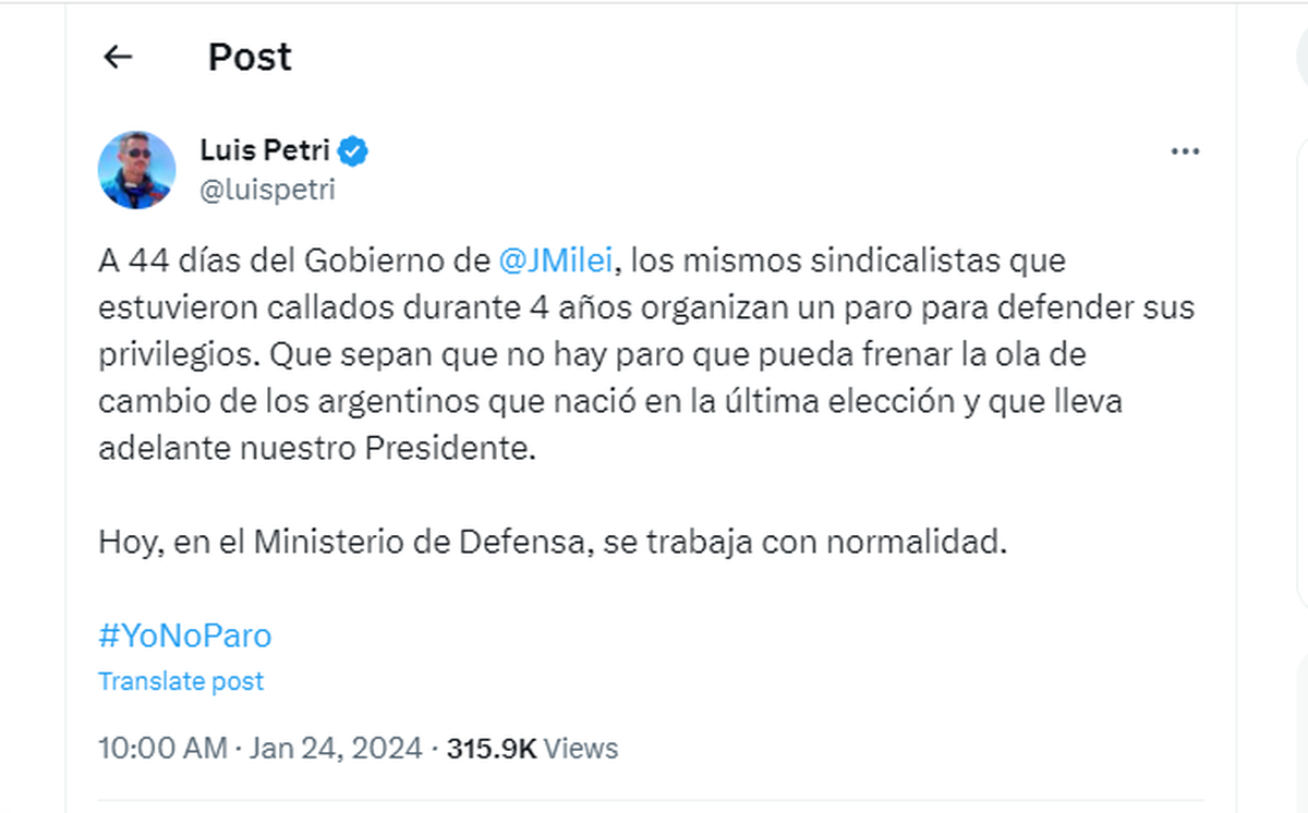Si bien viene de las filas del radicalismo, Luis Petri lleva puesta la camiseta de la gestión mileísta. De hecho, este miércoles fue uno de los primeros que abrió fuego contra el paro de la CGT y la CTA.
