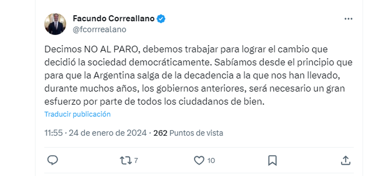 Otro que respaldó a Milei fue el diputado nacional Facundo Correa Llano.