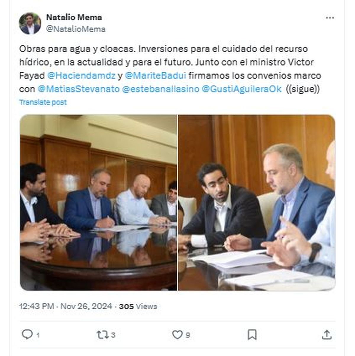 El gobernador Alfredo Cornejo se decidió a darles a las comunas de Luján, Maipú y Tupungato parte de los fondos de Portezuelo del Viento para destinarlos a obras de agua de esas comunas que son proveedoras del servicio de agua potable y cloacas.