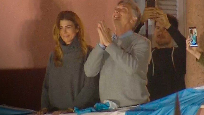 El mandatario arribó a la Casa de Gobierno a las 19 e inmediatamente después salió al balcón junto a la primera dama, Juliana Awada, y agradeció emocionado el apoyo de los manifestantes.