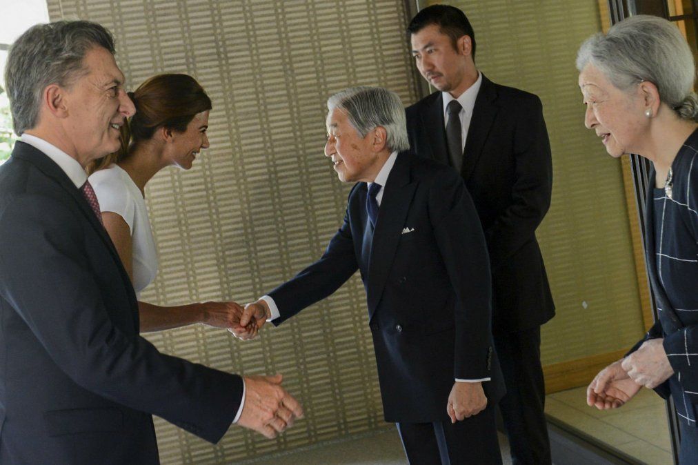 El presidente Mauricio Macri y la primera dama, Juliana Awada, fueron recibidos ayer por el emperador Akihito y la emperatriz Michiko en el Palacio Imperial de Tokio, en el cierre de su visita oficial a Japón.