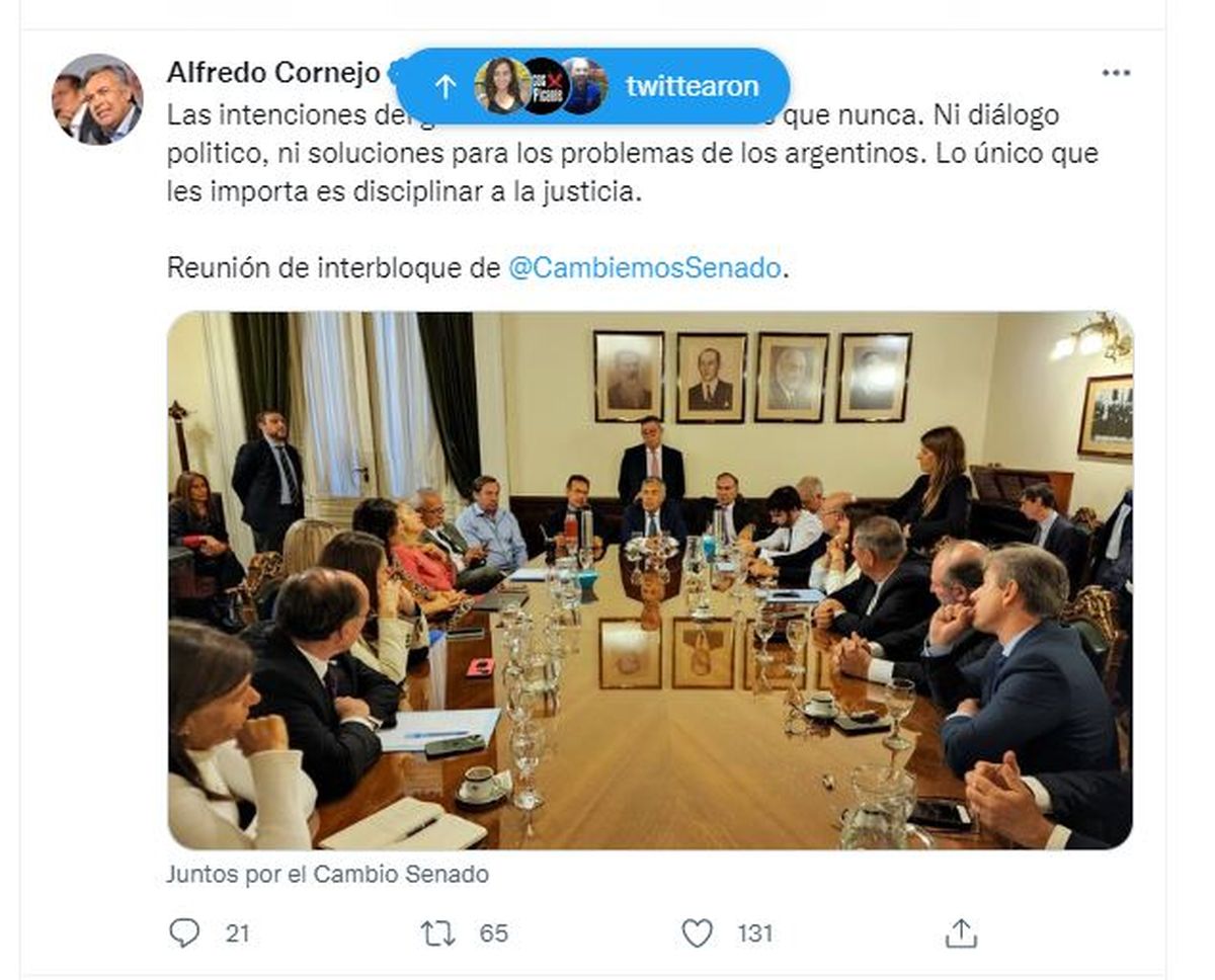 Juntos por el Cambio amenazó con no darle quórum al oficialismo para la sesión especial convocada este jueves en el Senado de la Nación para el tratamiento del proyecto de ley de 18 gobernadores, firmado por la senadora por Mendoza Anabel Fernández Sagasti, para ampliar la cantidad de miembros de la Corte Suprema de Justicia. Sin embargo, el Frente de Todos consiguió los votos necesarios y pasadas las 15 arrancó el debate.