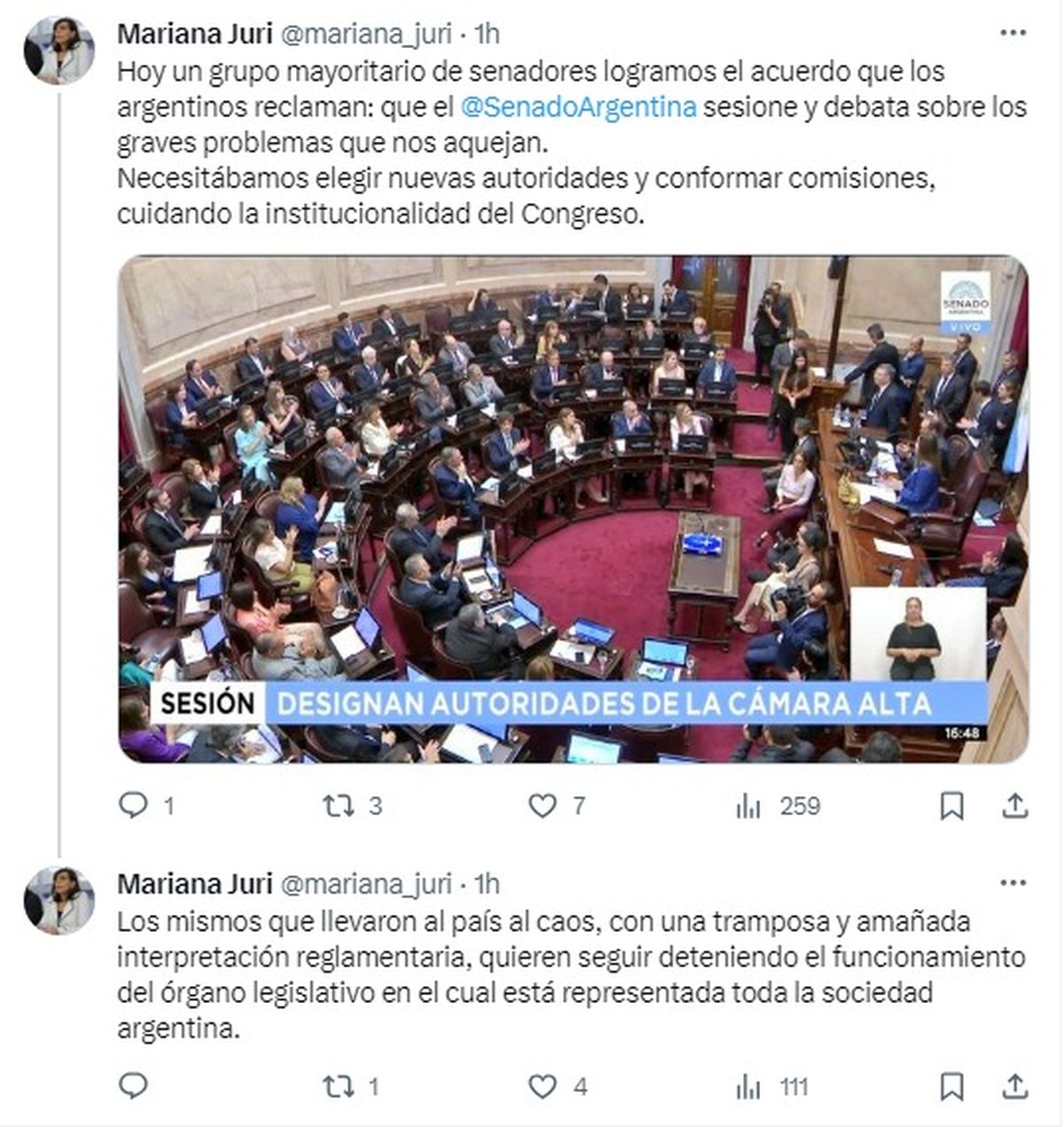 Además, recalcó que “en este momento nosotros estamos en receso, la cámara no está llamada a tener sesión extraordinaria y esta sesión viola la Constitución y el reglamento del Senado. No hay necesidad de empezar mal una gestión de gobierno”.