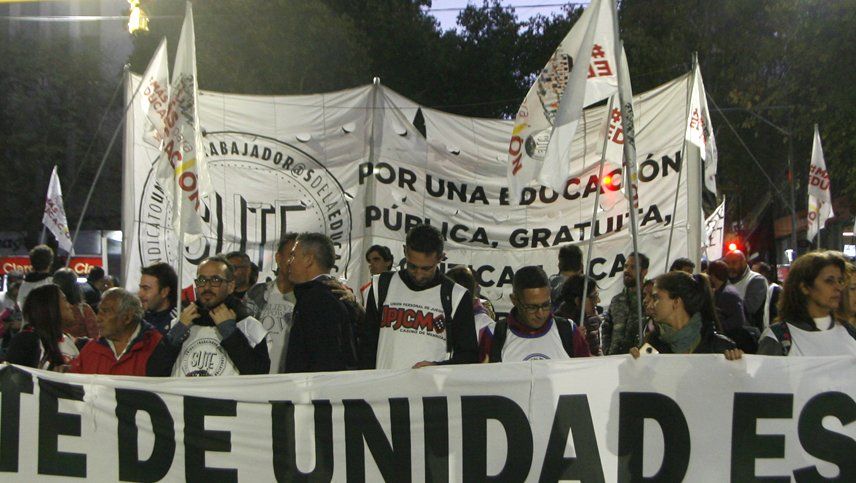La concentración se produjo en avenida San Martín y Peatonal Sarmiento, y desde allí la columna transitó varias arterias céntricas con una gran bandera al frente que decía "Frente de Unidad Estatal"para llegar a Plaza Independencia, junto a la Legislatura, en donde varios dirigentes se refirieron a la difícil situación que atraviesa el país y a las políticas de ajuste que llevan adelante el presidente Mauricio Macri y el gobernador Alfredo Cornejo.