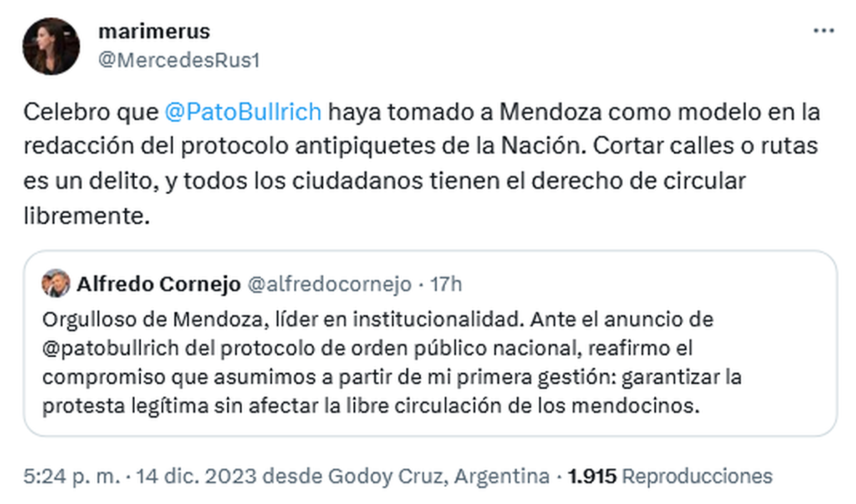 Bullrich y el modelo mendocino antipiquetes