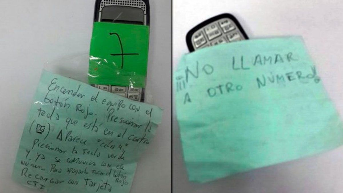 El aparato, un viejo Alcatel, tenía pegado un papel con la siguiente leyenda:
