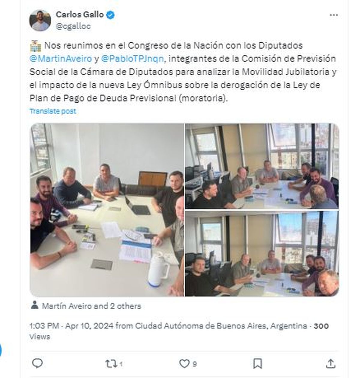 Este miércoles Aveiro y el ex titular de la delegación mendocina de Anses, Carlos Gallo, se reunieron con los integrantes de la comisión de Previsión Social de Diputados para analizar también el impacto del contenido de la Ley Ómnibus tanto en la actualización de la movilidad jubilatoria como en la derogación de la moratoria que aún está vigente.