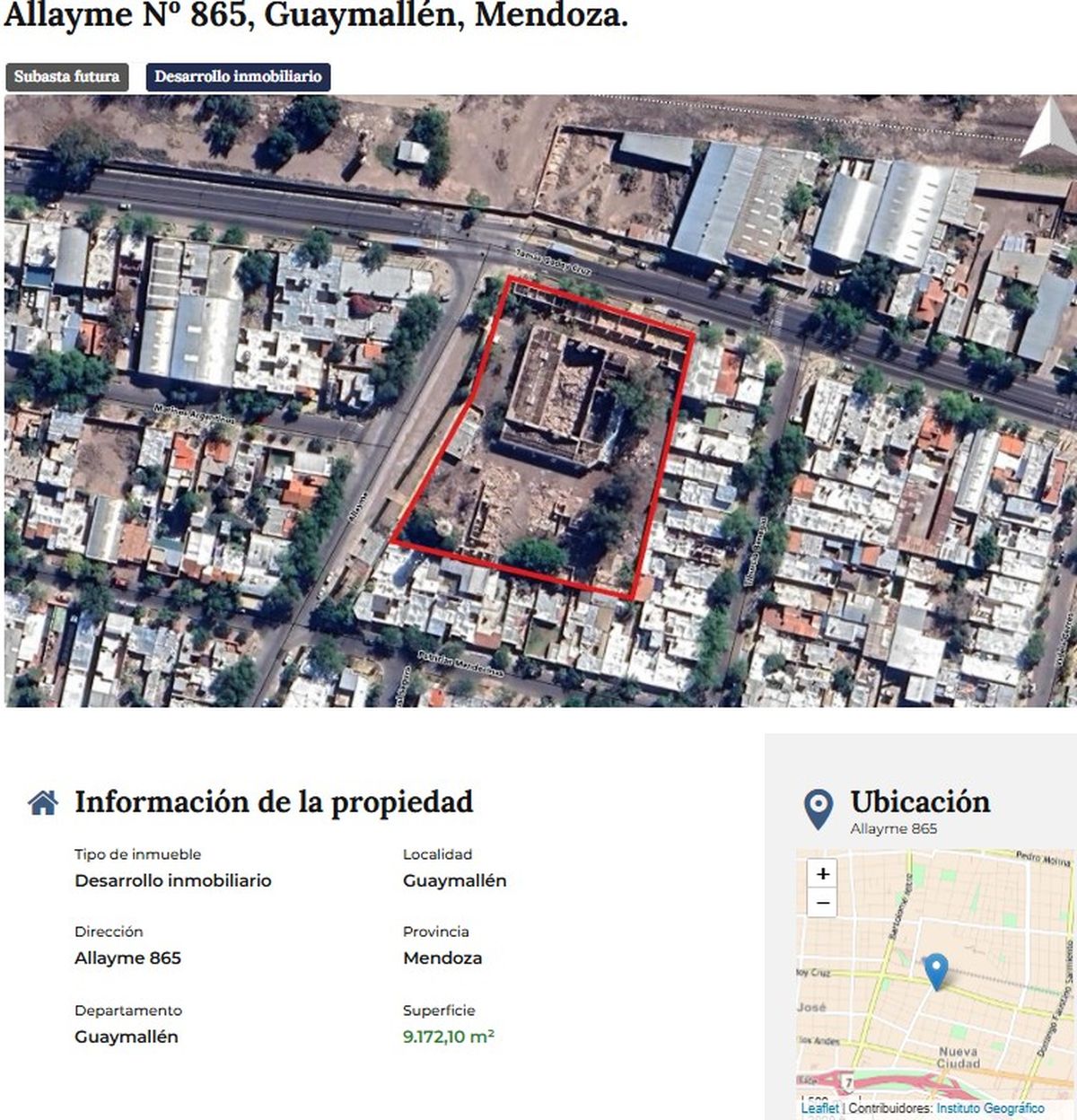 El inmueble está ubicado en las calles Allayme y Godoy Cruz de Guaymallén, frente a los terrenos de ex ferrocarril Belgrano y a pocos metros del Espacio Cultural Julio Le Parc.