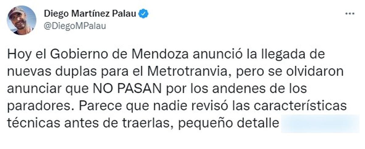 Las palabras de Palau fueron leídas con atención, ya que durante su gestión se inauguraron los primeros recorridos. Hasta hubo memes y chicanas en las redes. E incluso se habla de videos en los que se notaría que, al avanzar, los carros rozan con la base de los rieles.