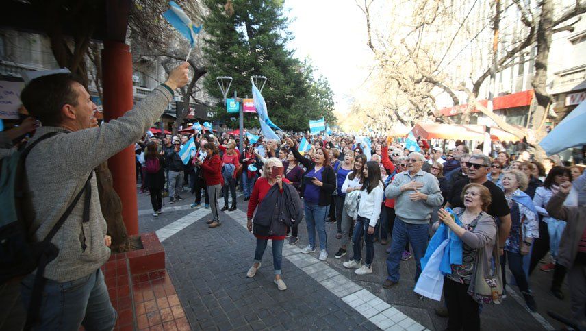 La marcha para apoyar al presidente Mauricio Macri también se hizo en Mendoza. Alrededor de 800 personas, según los propios organizadores, se autoconvocaron en la Peatonal Sarmiento y cantaron consignas a favor de la actual gestión y en contra de la fórmula integrada por Alberto Fernández y Cristina Fernández, sobre todo contra la ex presidenta.