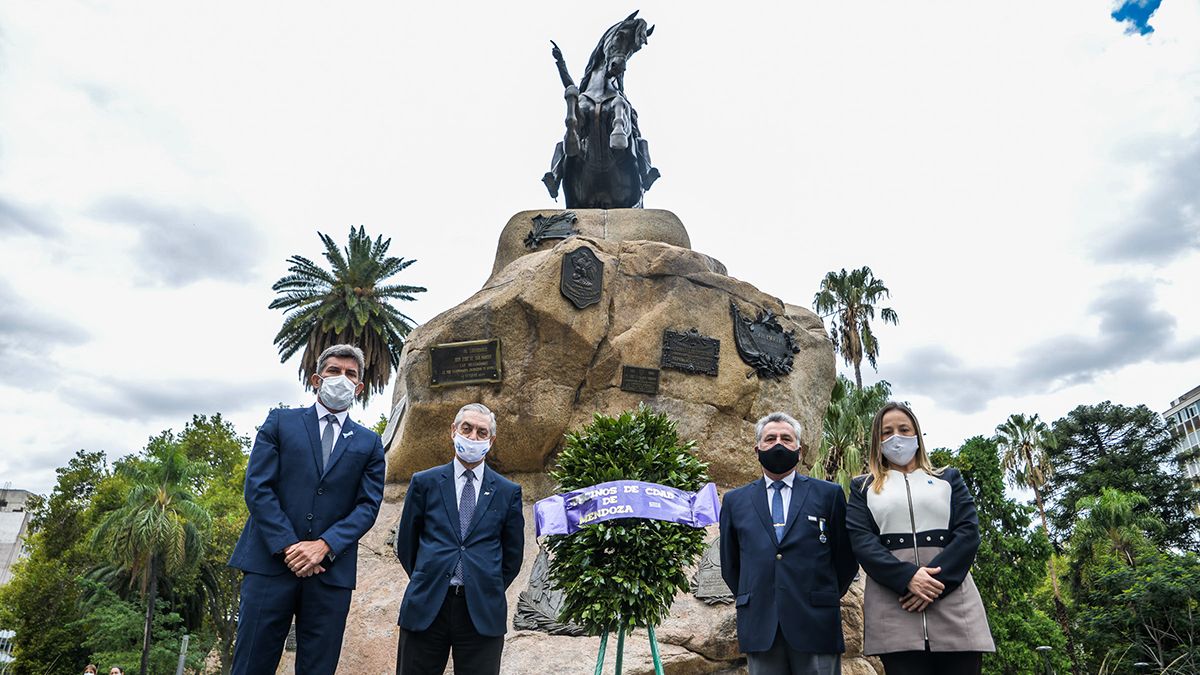 Durante el acto, la banda de música de la Policía de Mendoza, dirigida por el maestro Jorge Vega, interpretó marchas patrias, el Himno Nacional y la Marcha de Malvinas. También sonó el Silencio Militar en el momento en el que se nombró a los 17 mendocinos caídos en batalla. Allí estuvieron también Manuel Cardozo y Lucio Candia, representante de la Federación de Veteranos de Malvinas, Jorge Vicchi, presidente del Instituto Argentino de Relaciones Internacionales y la señora Delicia Rearte de Giachino, madre del caído Capitán de Fragata de Infantería de Marina Pedro Edgardo Giachino.