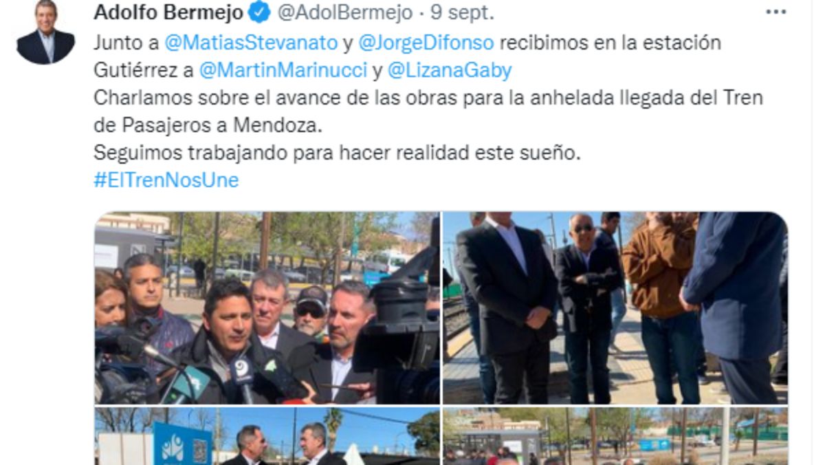 “Iniciamos una exploración de vías para evaluar la vuelta del tren a Mendoza”, confirmó el titular de Trenes Argentinos, Martín Marinucci en la visita que hizo a la provincia, junto a la directora de BICE (Banco de Inversión y Comercio Exterior), Gabriela Lizana; y el gerente de la Línea San Martín, Luciano Haas.