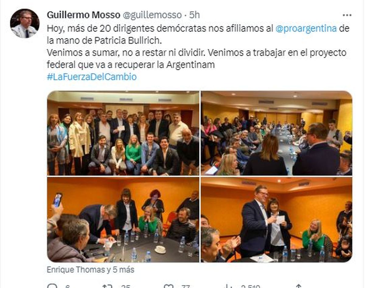 Bullrich agregó que cada vez más partidos se suman a este proyecto de cambio y mencionó las afiliaciones que este lunes se dieron por parte del Partido Demócrata con Guillermo Mosso la cabeza. “Hoy también se afiliaron el grupo de mujeres conocido como las pelo de cocker y del Partido Demócrata Progresista (PDP) al PRO. Cada vez mostramos más amplitud en Mendoza”.