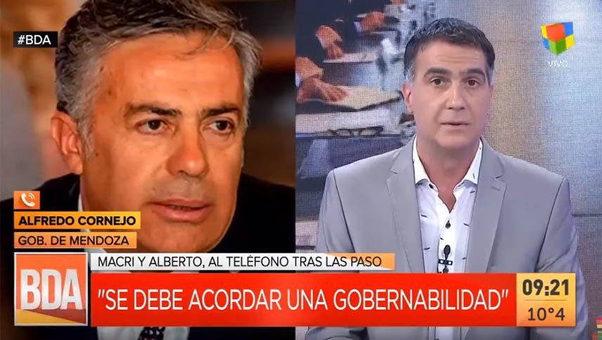 Cornejo: Permitime a mí, por favor. Permitime a mí, por favor. El poder simbólico está repartido entre el que está gobernando y quien ganó las PASO. No me digas que no.