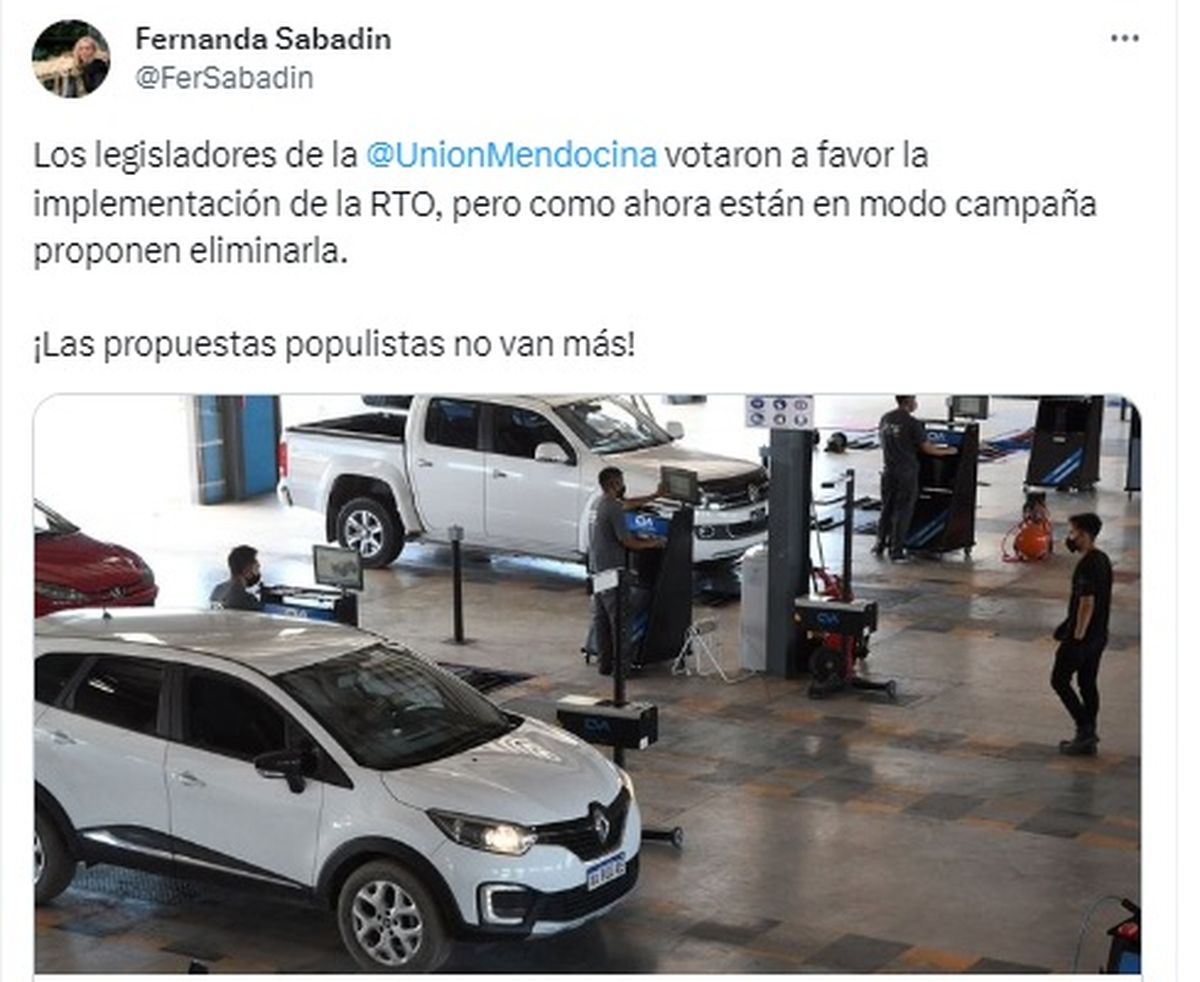 Desde Cambia Mendoza, aseguraron que es una medida demagógica ya que la RTO es una ley nacional y no se puede eliminar.