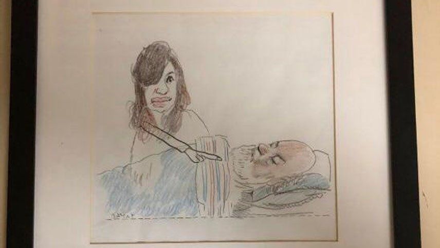 El juez Claudio Bonadio tenía enmarcadas en su despacho dos obras del humorista Menchi Sábat. Una de ellas protagonizada por él y Cristina Fernández de Kirchner, su "enemiga judicial" número uno.