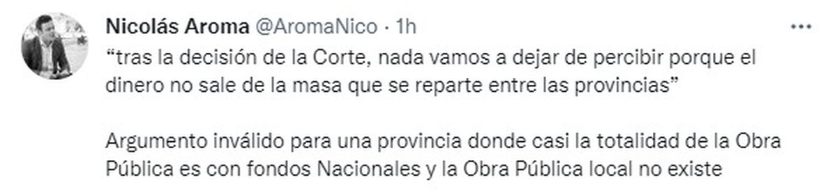 Ante eso, desde la vereda de enfrente responden que, de todas formas, esos fondos que está perdiendo la Nación se estaban repartiendo de forma discrecional, favoreciendo a las jurisdicciones donde gobierna el Frente de Todos; versión que suelen desmentir los funcionarios nacionales como el ministro de Obras Públicas, Gabriel Katopodis.